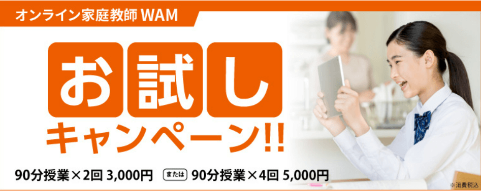オンライン家庭教師WAMには、お得なキャンペーンがたくさんあります。